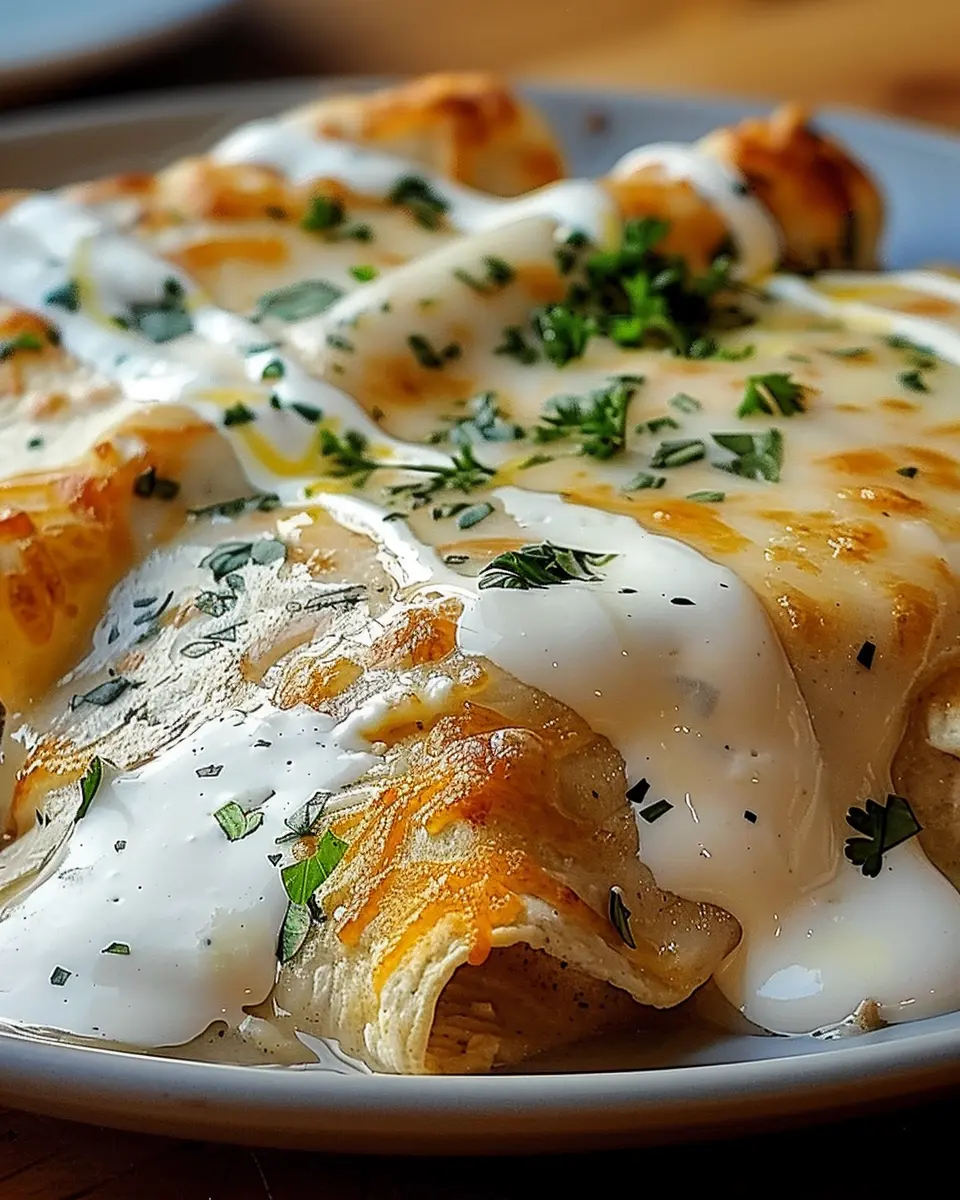 PrintChicken Enchiladas with Sour Cream White Sauce: Easy and Satisfying
