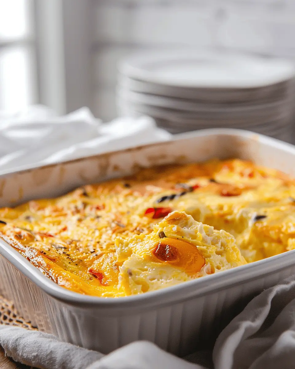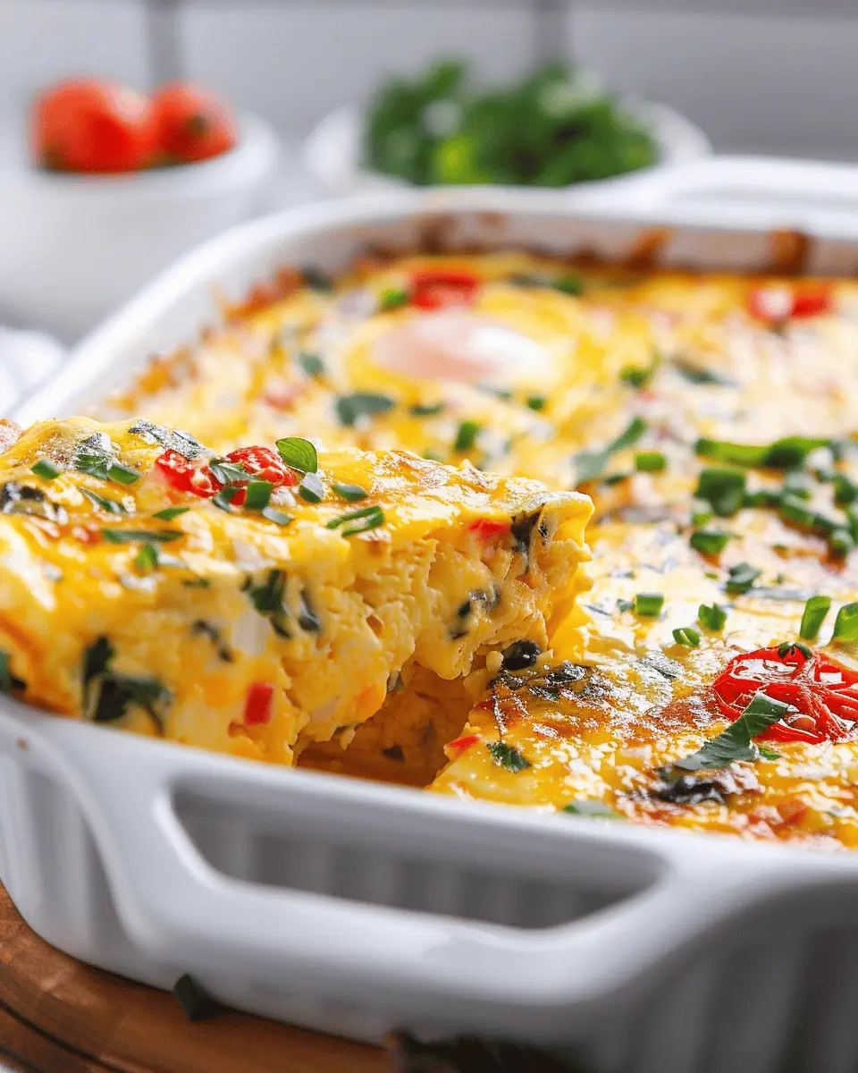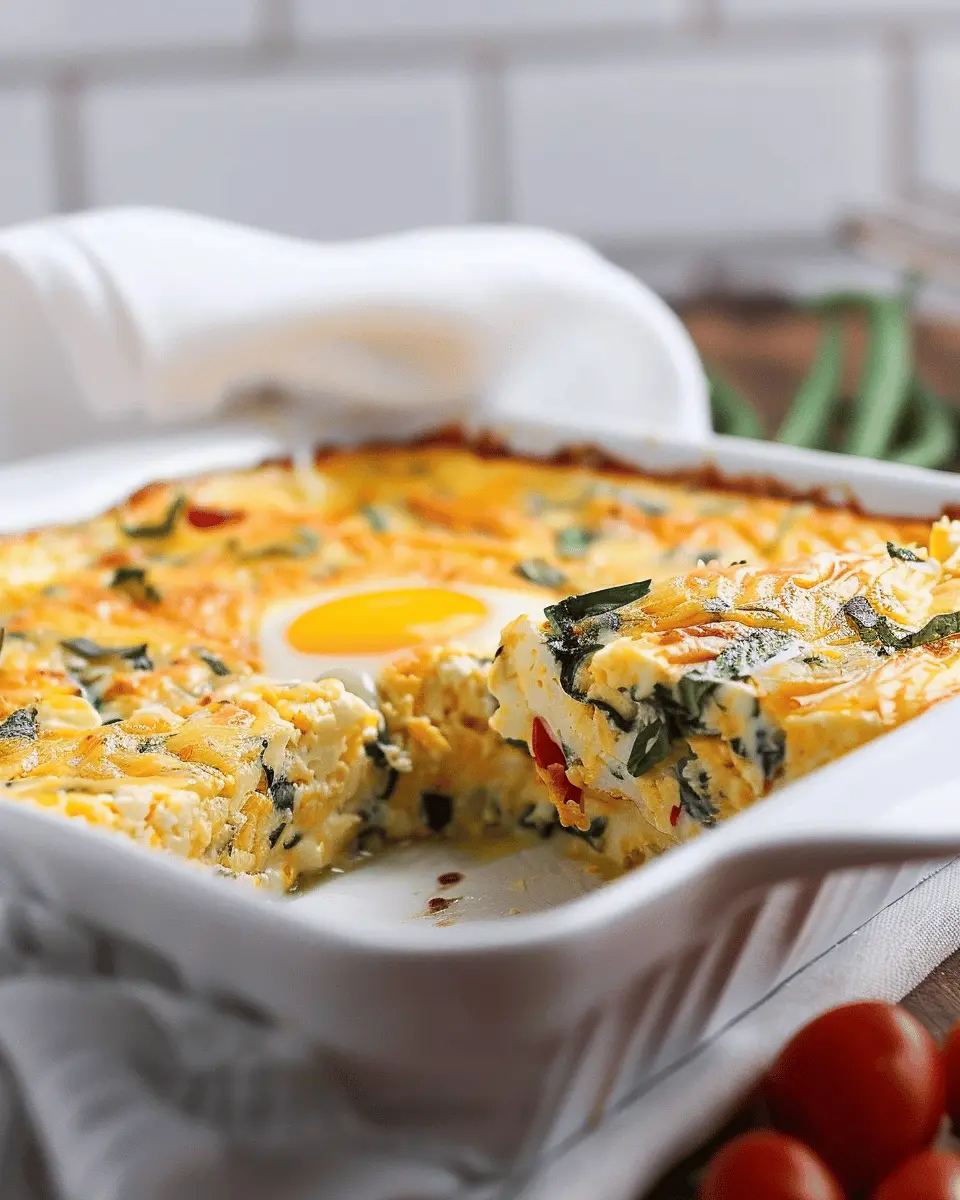 This recipe allows for a lot of flexibility—feel free to customize your bake with your favorite veggies or any leftovers you have on hand. Spinach, bell peppers, and onions blend beautifully with the cheese and eggs, creating a colorful and nutritious meal. Plus, you can easily tweak it to fit your taste preferences; try adding herbs like basil or oregano for an extra burst of flavor.
