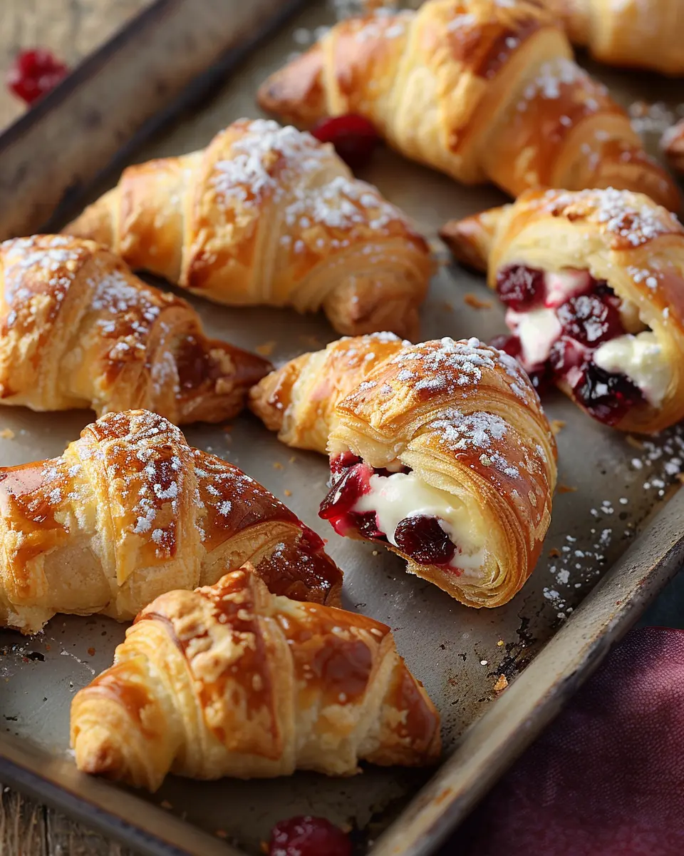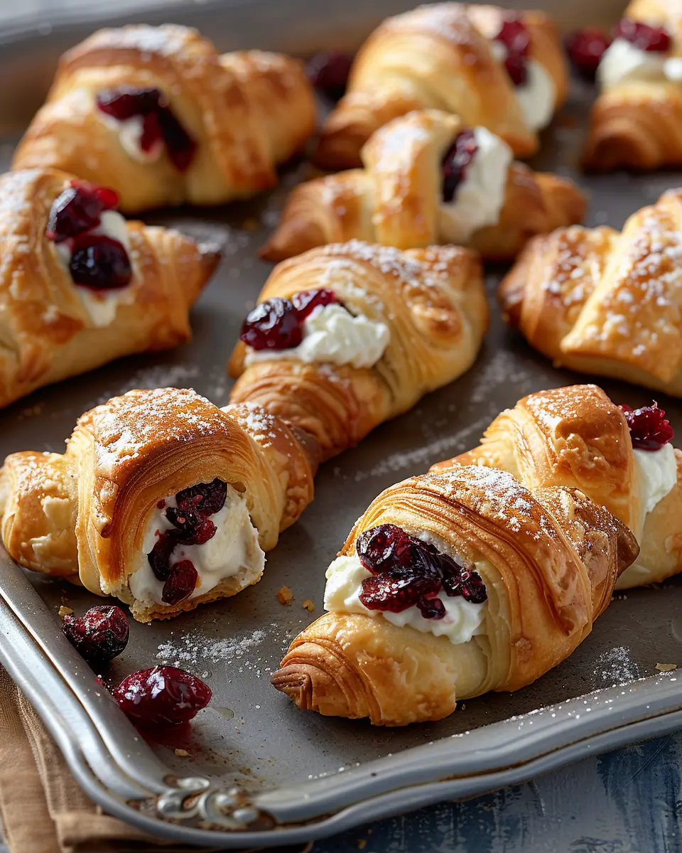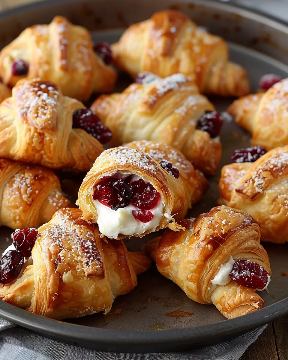 A delightful treat made with cream cheese and cranberries, wrapped in crescent dough.