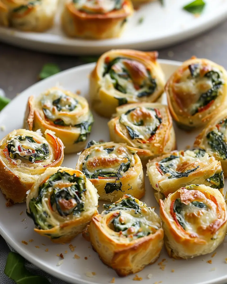 These easy spinach dip in bite-sized pinwheels are perfect for any gathering, whether it’s a vibrant brunch or a casual weeknight get-together. You can garnish them with a sprinkle of parsley or a side of marinara for dipping!