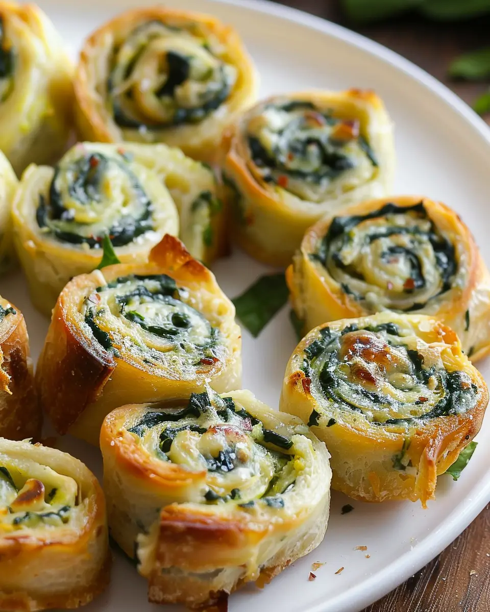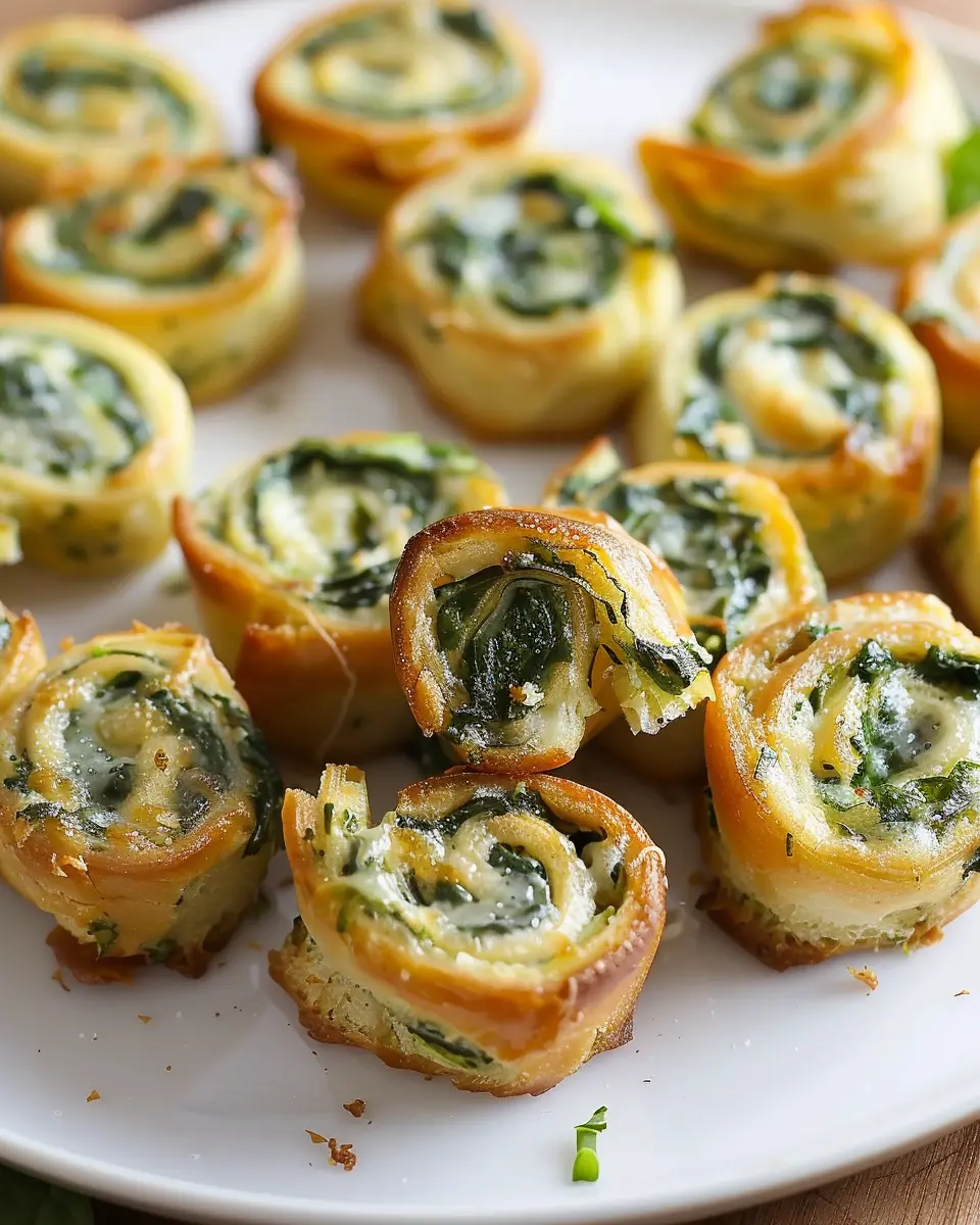 A delightful treat perfect for parties and gatherings, these bite-sized pinwheels are filled with creamy spinach dip.