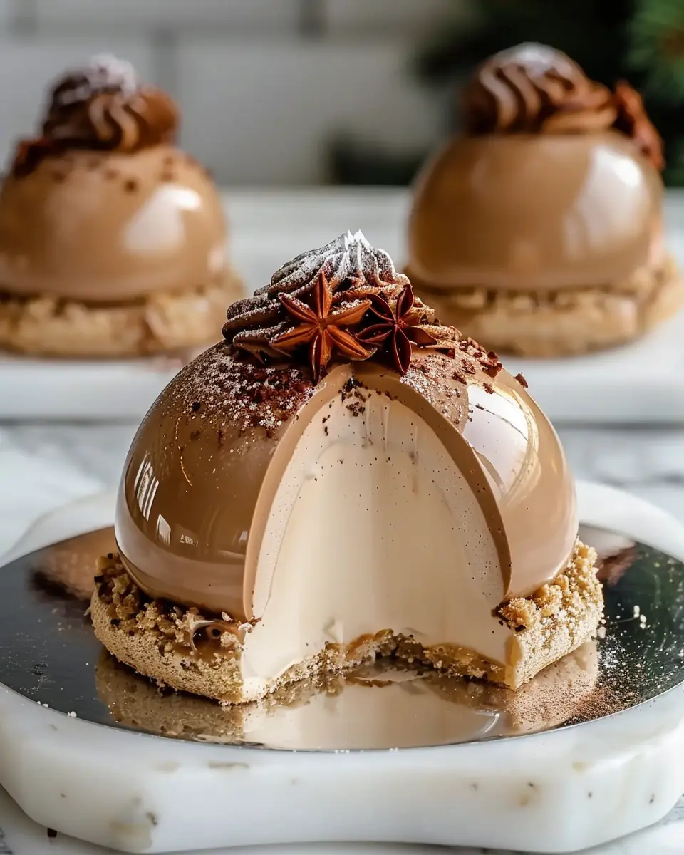 Gingerbread Latte Mousse Domes are a gourmet holiday dessert idea that combines the rich flavors of gingerbread and coffee in an elegant dessert form.