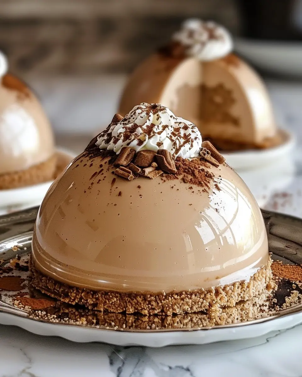 Presentation is key to making your Gingerbread Latte Mousse Domes truly shine. Try placing the domes on a festive plate dusted with powdered sugar or cocoa powder for an elegant touch. Garnish with a dollop of whipped cream and a sprinkle of crushed gingerbread cookies to add texture. A drizzle of caramel or chocolate sauce can elevate this dessert to gourmet status, making it an irresistible centerpiece.