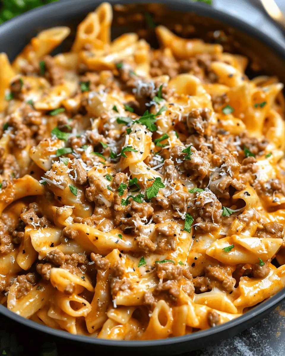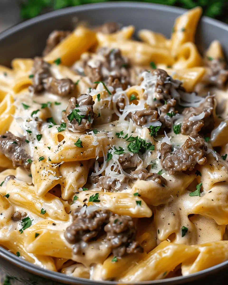 PrintHigh Protein Creamy Beef Pasta: A Quick and Delicious Dinner
