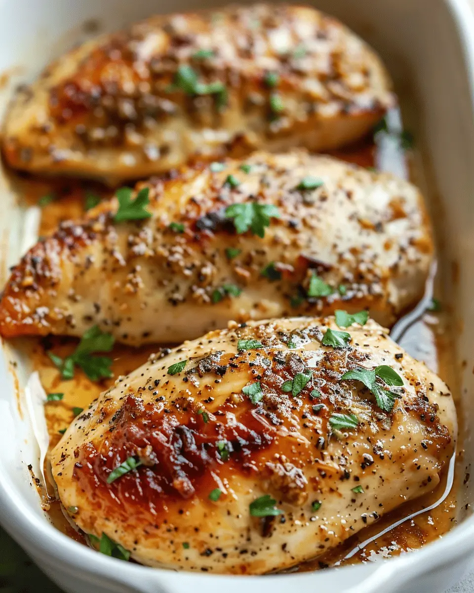 Once your oven is ready, it’s time to cook! Place the marinated chicken breasts on the prepared baking sheet. Bake for 25–30 minutes or until the internal temperature reaches 165°F (75°C). The cooking time may vary based on the thickness of the chicken; always check for doneness with a meat thermometer.