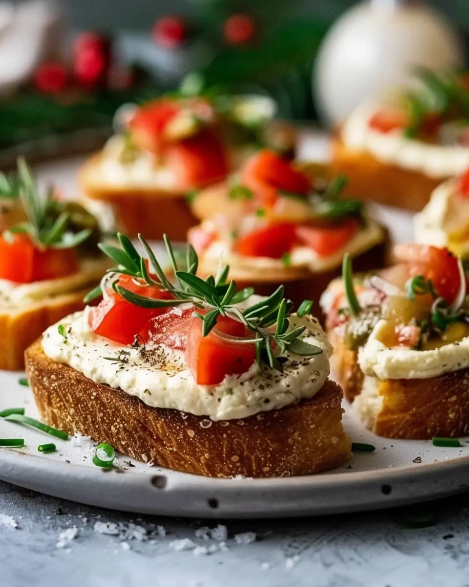 - Mini tartlets: Use pre-made pastry shells, fill with a mixture of cream cheese, herbs, and your favorite toppings.