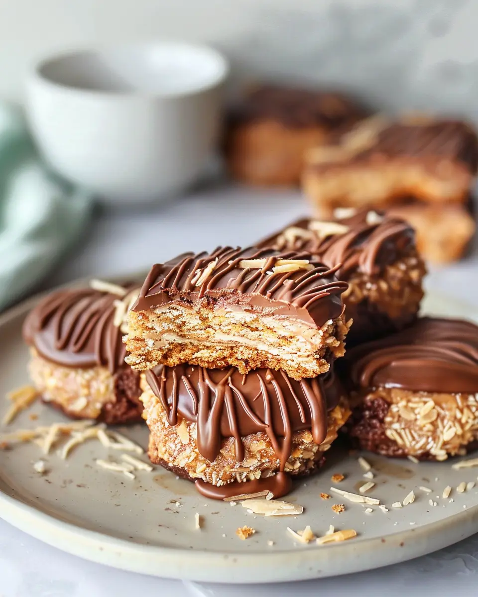 If you’re a fan of no-bake Samoa cookies, why not add a twist? Enter Peanut Butter Samoa Cookies! Simply substitute the classic chocolate and coconut mix with your favorite peanut butter. You start with the same base—oats, coconut, and sweeteners—but mix in a generous scoop of creamy peanut butter. The result? A chewy, nutty delight that still maintains that signature Samoa texture.