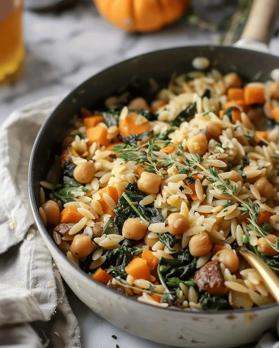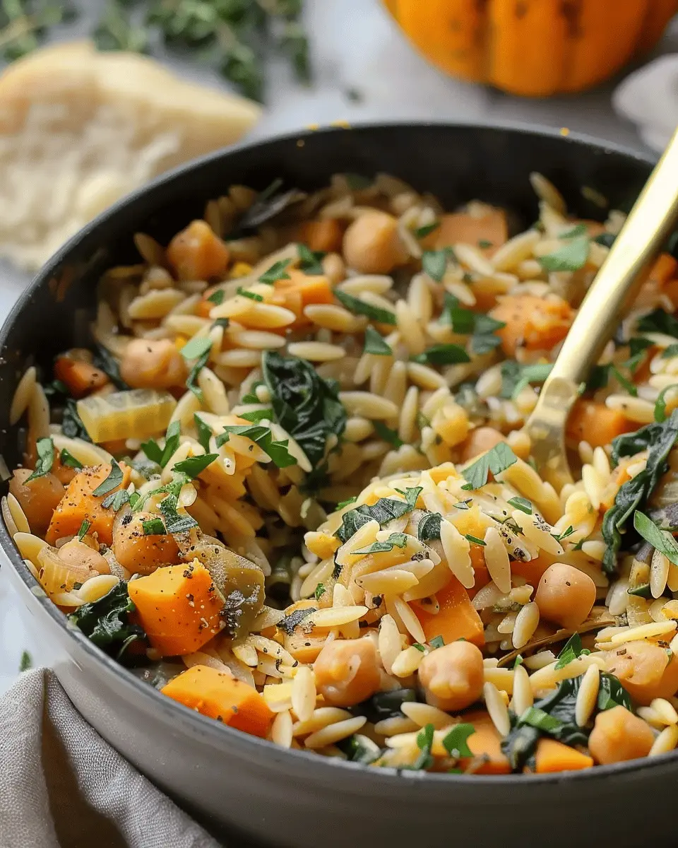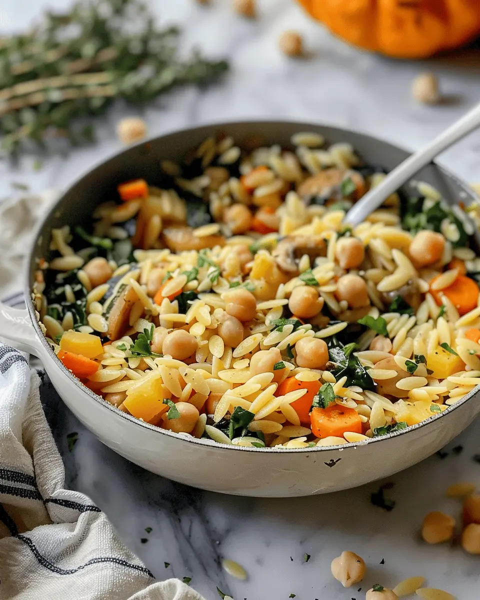One Pot Fall Vegetable Orzo and Chickpeas Recipe: Easy Comfort Food