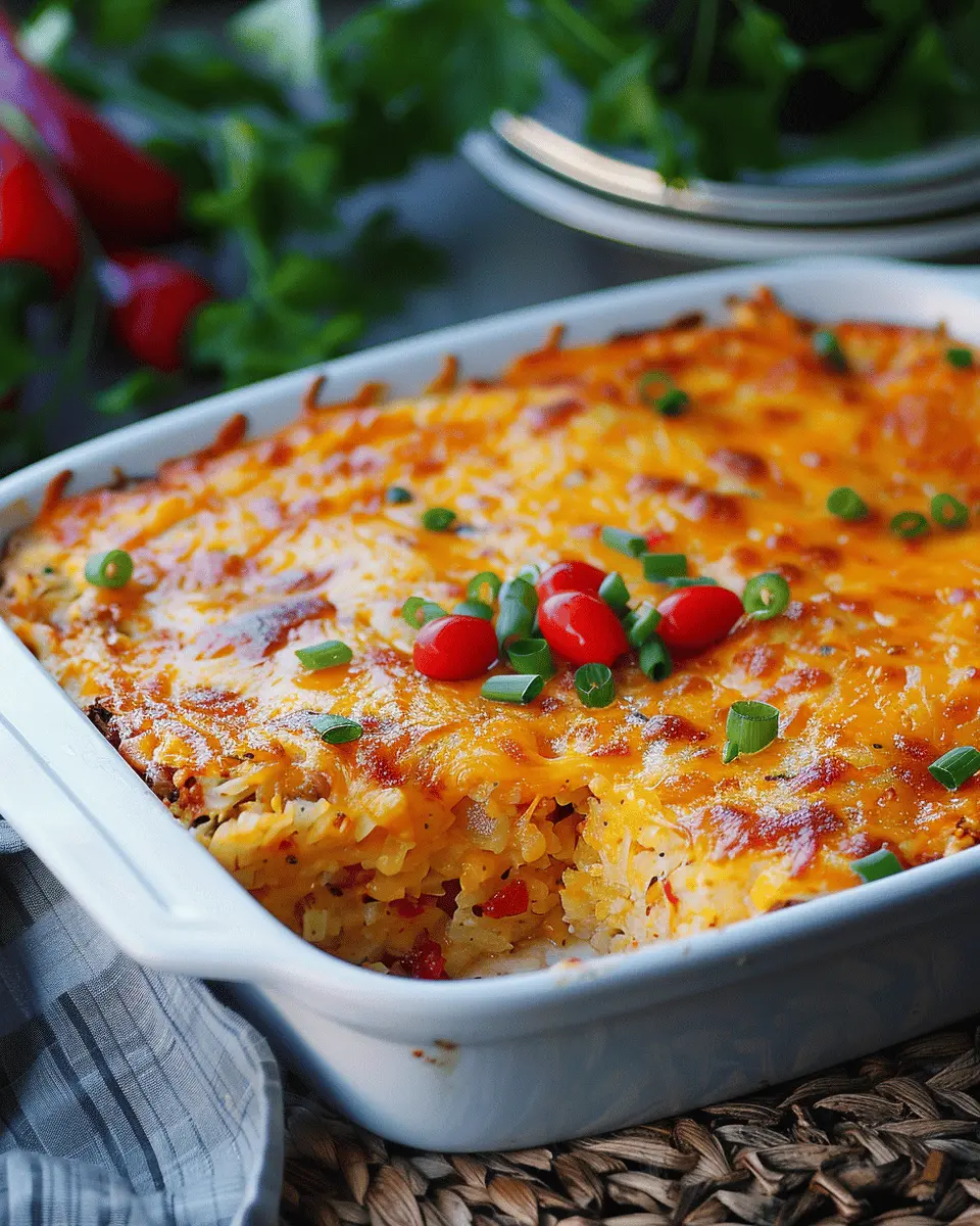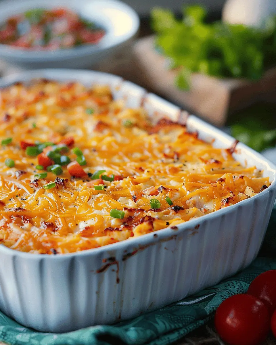 If you’re searching for a crowd-pleaser that combines comfort food with a twist, look no further than this pimento cheese hash brown casserole. Imagine rich, creamy pimento cheese blended with savory textures of crispy hash browns, topped with Turkey Bacon or Chicken Ham for that extra scrumptious bite.