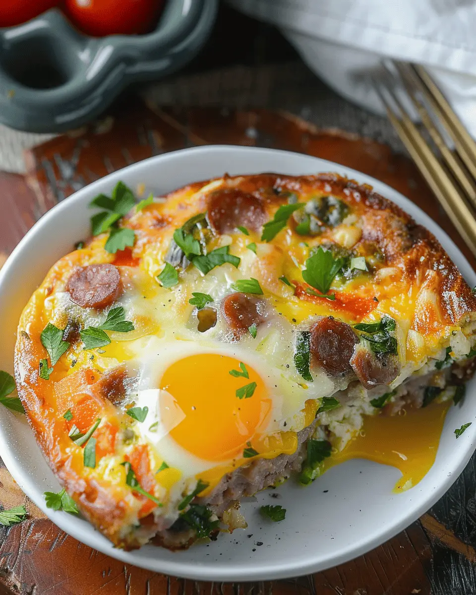 Definitely! One of the joys of a sausage egg bake is how easily you can tailor it to your preferences. Swap out beef sausage for turkey bacon or chicken ham if you’re seeking leaner options. Toss in your favorite veggies like spinach, bell peppers, or even jalapeños for a spicy kick. And if you love different cheeses, feel free to experiment! The possibilities are endless, making it a great dish for your personal touch.