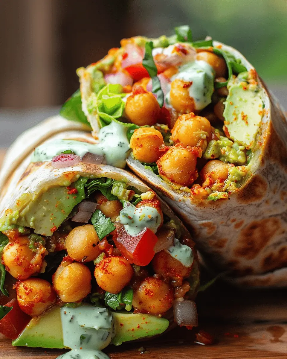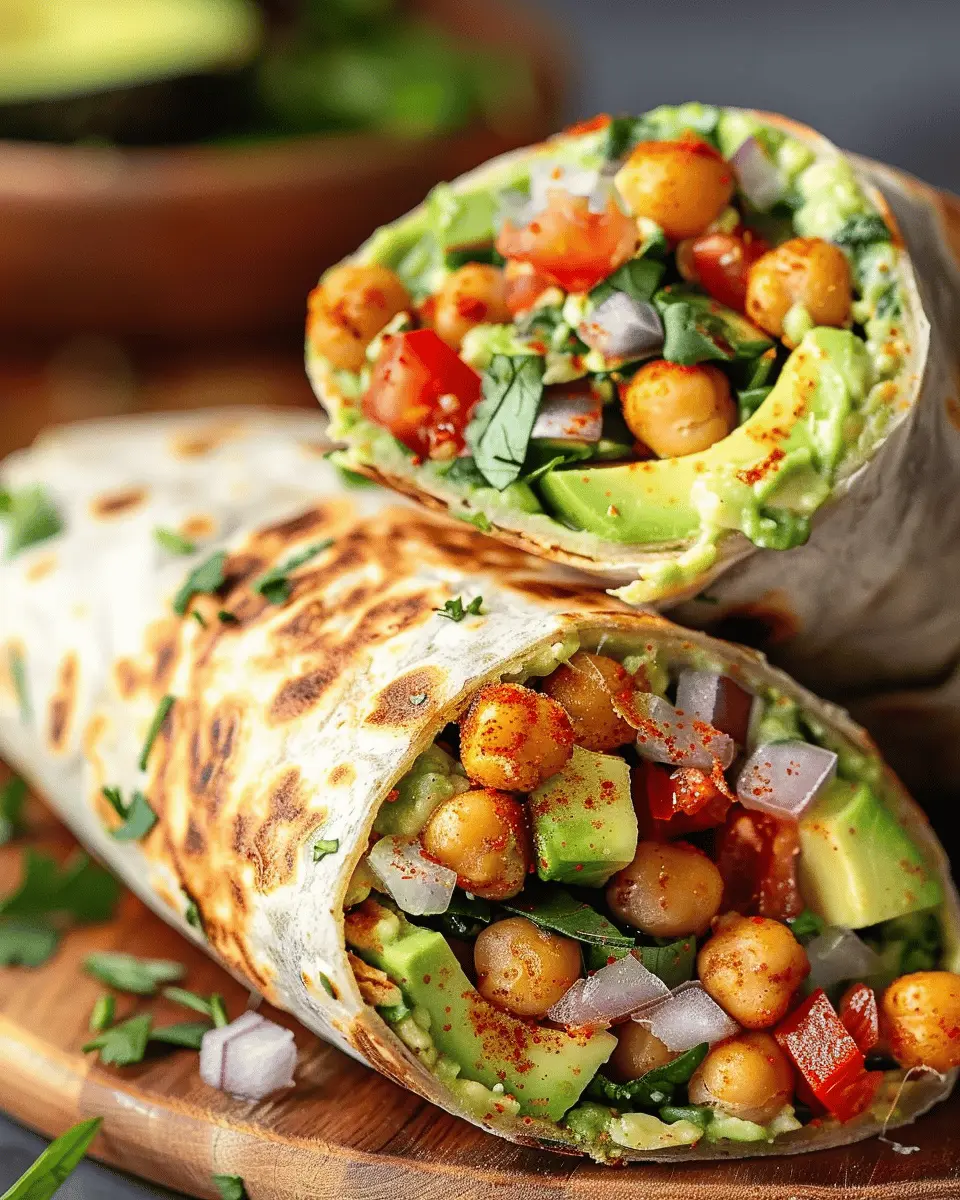 A delicious and nutritious wrap featuring spicy chickpeas and creamy avocado.