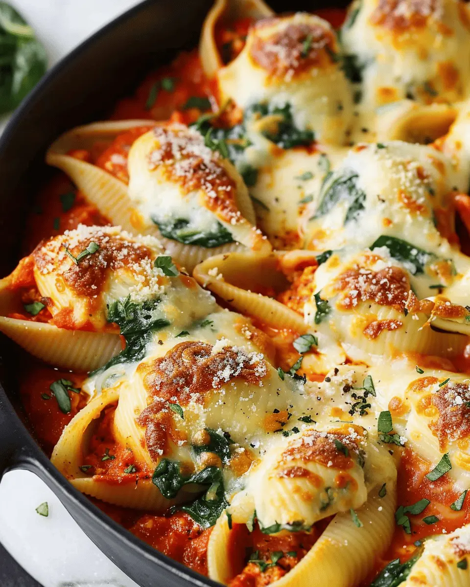 In summary, this Spinach and Ricotta Stuffed Shells Recipe is not just a meal; it’s a delightful experience waiting to happen in your kitchen. Whether you’re hosting friends or enjoying a quiet evening at home, these stuffed shells deliver comfort and flavor in every bite. The combination of creamy ricotta and fresh spinach offers a deliciously nutritious option that appeals to all ages—perfect for anyone juggling a busy lifestyle.