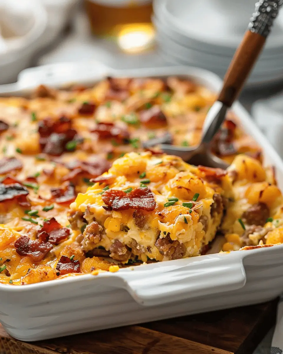 Absolutely! Preparing a tater tot breakfast casserole in advance is a great way to save time during busy mornings. You can assemble all the ingredients the night before, cover the casserole dish, and store it in the refrigerator. When it’s time to bake, simply pop it in the oven, and you’ll have a hot, delicious breakfast ready in no time. If you prefer, you can also freeze it before baking. Just make sure to thaw it overnight in the refrigerator before cooking.